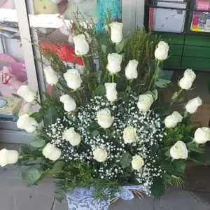 arreglo pie de urna 25 rosas Ecuatorianas .